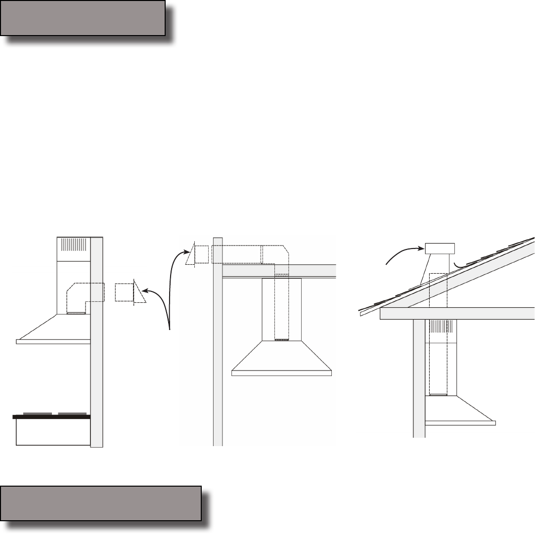 This range hood is factory set for venting through the roof or wall. For non-vented (re-circulating) installa-