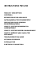 INSTRUCTIONS FOR USE PRODUCT DESCRIPTION CONTROLS BEFORE USING THE APPLIANCE SAFEGUARDING THE ENVIRONMENT PRECAUTIONS AND GENERAL RECOMMENDATIONS HOW TO USE THE REFRIGERATOR COMPARTMENT HOW TO USE THE FREEZER COMPARTMENT HOW TO DEFROST AND CLEAN THE APPLIANCE TROUBLESHOOTING GUIDE AFTER-SALES SERVICE INSTALLATION ELECTRICAL CONNECTION