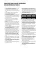 PRECAUTIONS AND GENERAL RECOMMENDATIONS • Use the refrigerator compartment only for the storage of fresh food and the freezer compartment only for the storage of frozen food, the freezing of fresh food, and to make ice cubes. • During installation, make sure the appliance does not damage the power cable. • Do not store glass containers with liquids in the freezer since they may burst. • Do not eat ice cubes or ice lollies immediately after taking them out of the freezer since they may cause cold burns.
