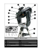7 8 9 6 5 10 4 11 3 12 2 1 13 14 A B C D E F Figure 2 – The CPC Series 1 2 3 4 5 6 7 A B C Control Panel (see below) Focus Knob Star Diagonal Hand Control Eyepiece Finderscope Finderscope Quick Release Bracket Hand Control Port Auxiliary Port s PC Interface Port 8 9 10 11 12 13 14 D E F Optical Tube Schmidt Corrector Lens Fork Arm Carrying Handle Right Ascension Locking Knob Tripod Accessory Tray / Center Support Bracket Auto Guider Port On/Off Switch 12v Input Jack 5