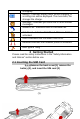 (2) (3) 2.1.2 Install the battery (4 ) and back cover (5) (4) (5) 2.2 Turning the phone on To turn the phone on, press and hold the End / Power key. Enter the PIN code if required. 2.3 Charging the Battery 1. 2. 3. 4. To charge the battery, plug in the charger connector at the bottom of your phone (USB interface) and then plug the other end into an AC power socket. The battery symbol indicates the charging status. While charging, the charge indicators will scroll.