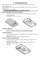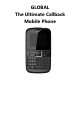 2 Getting Started Please read the safety instructions in the "Safety Information and Notices" section before use. This section provides information about the Calback Services with this mobile phone when a Callback SIM card is installed. 2.1 Inserting the SIM Card and the battery Remove the back cover and the battery Make sure the phone is switched off. Hold the phone with the front facing downwards; lift the back cover p to remove it.