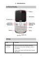 Introduction 1.1 Phone Display 1.2 Key Key Function Left/Right Soft Key Press to perform the function currently displayed in the bottom left/right corner of the screen. In idle mode, press Left Soft Key to access Main Menu.
