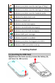 Indicates your phone uses the alert type of “Ring”. Indicates your phone uses the alert type of “Vibrate”. Indicates your phone uses the headsets profile Indicates the alarm clock is set. Indicates a missed call. Indicates new text message(s). Indicates new multimedia message(s). Indicates new voice mail message(s). Indicates WAP push messages. Indicates stopwatch is enabled. Indicates your phone has logged onto GPRS. Indicates a WIFI connection is set up. 2 Getting Started 2.1 Inserting the SIM Card 2.1.