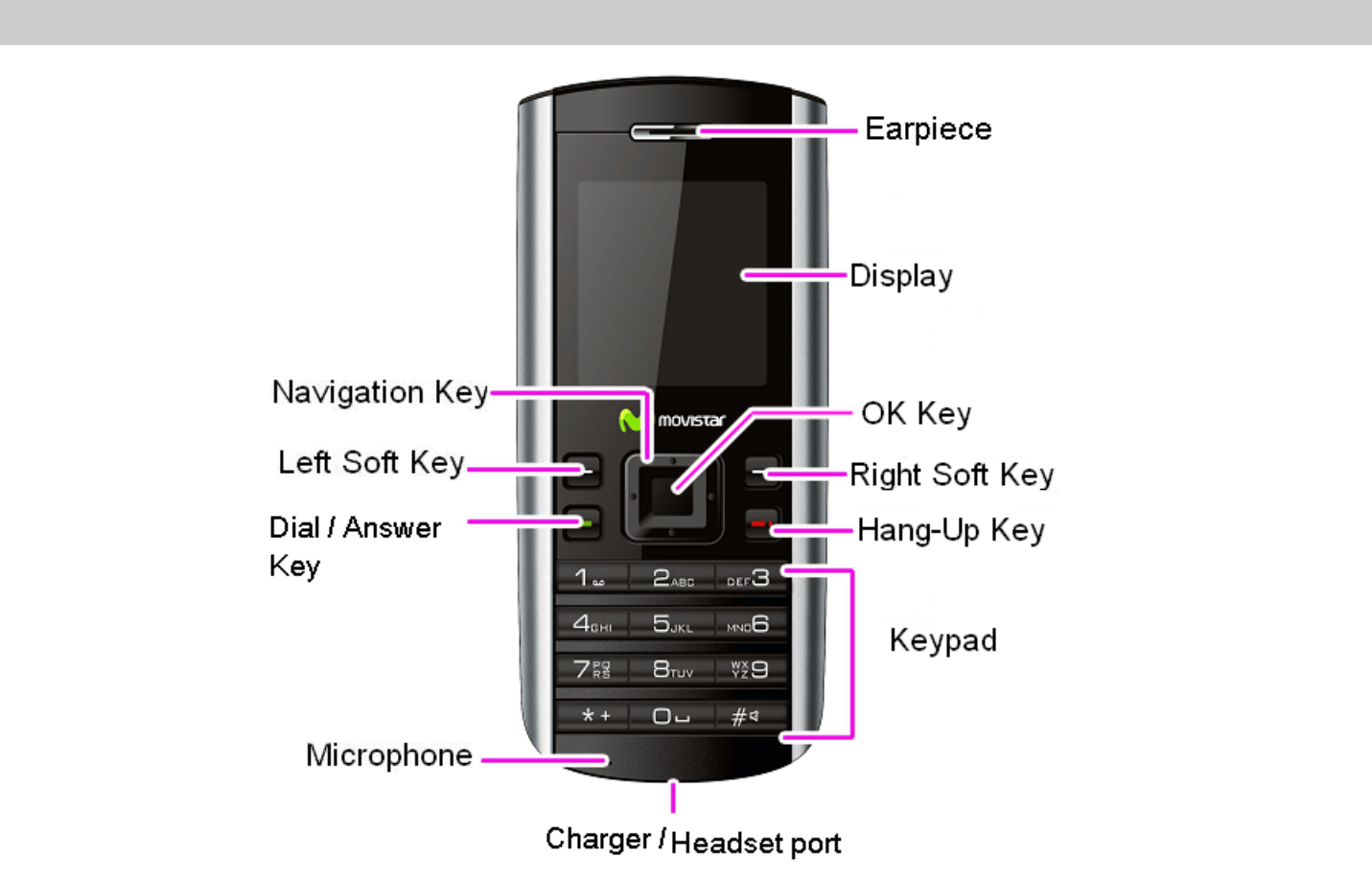 Left Soft Key Enter the Main menu in idle mode. Select the highlighted item. Right Soft Key Access the Call center in idle mode. Return to the previous menu. OK Key Enter the WAP in idle mode. Confirm a selection. Enter numbers, letters or characters. Select a submenu item labeled with the corresponding number. Numeric key * # Navigation Key Press twice quickly to enter ‘+’ to make an international call. Press and hold to toggle between *, +, (pause character) P, and (wait character) W.
