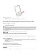 (2) (1) 2. Insert the SIM card (3), install the battery (4) and attach the battery cover as shown (5). (3) (4) (5) Note: make sure that the metallic contacts of the battery are facing the metallic contacts in the battery slot. Installing a microSD Card 1. The microSD card slot is on the right side of your phone. 2. With the metal contacts facing to the metal contacts in the slot, gently slide the SD card into the slot and press down until the card locks into place (6).