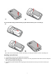 (1) (2) 2. Insert the SIM card (3), install the battery (4) and attach the battery cover as shown (5). (3) (4) (5) Note: make sure that the metallic contacts of the battery are facing the metallic contacts in the battery slot. Installing a microSD Card 1. The microSD card slot is on the right side of your phone. 2. With the metal contacts facing to the metal contacts in the slot, gently slide the SD card into the slot and press down until the card locks into place (6).
