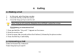 4. Calling 4.1 Making a Call 1. 2. 3. In idle mode, enter the phone number. Press the Dial Key to dial the number. Press the Hang-up Key to end the call. Note: During a call, press the Navigation Key Left/Right to adjust the volume. 4.1.1 Making an International Call 1. Press and hold the * Key until "+" appears on the screen. 2. Enter the country code. 3. Enter the area code (normally without the 0 before it) followed by the phone number. 4. Press the Dial Key to call directly. 4.