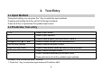 3. Text Entry 3.1 Input Method During text editing, you can press the * Key to switch the input methods. Pressing and holding the # Key will list all the input methods. Press the # Key to open/close the symbols input screen. 3.2 Predictive Text entry “2~9” Press to input letters. 1 Press to input symbols. 0 Press to enter a space; press and hold to enter 0. Navigation Key ▲/▼/◀/▶ Press to browse the last or next available word. Left Soft Key [Select] Press to confirm the letter or word.