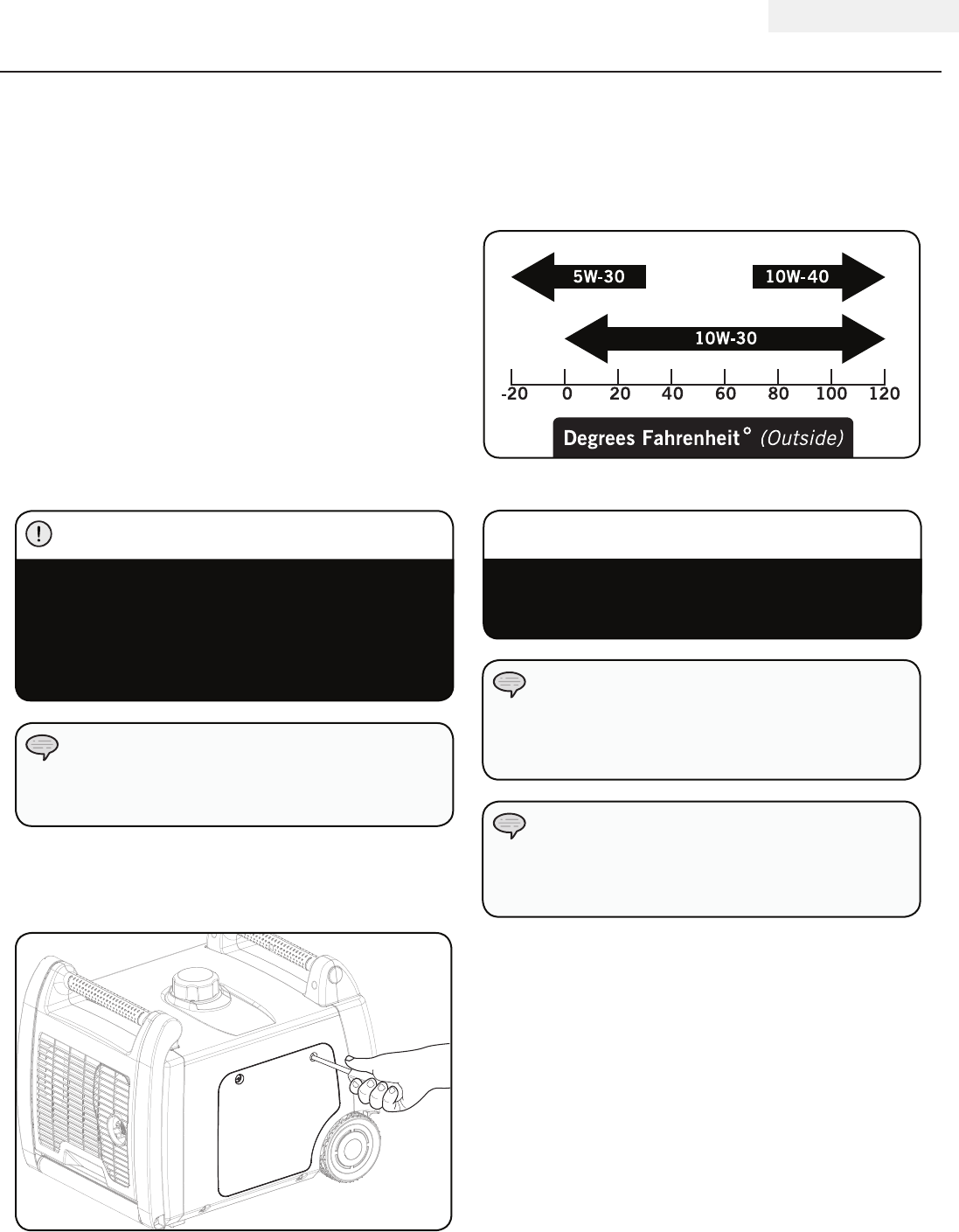 type and amount of oil. Damage to the generator as