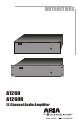 Specifications: (typical @25º C) Output Frequency Range: Output Load Range: Output Level: Audio sense on delay: Audio sense off delay: THD: Power Consumption: Operating Temperature: AC fuse: 20-20kHz 4-16 ohms 60 W/ch 8ohms (2 ch. driven) < 500msec ~ 30-100 seconds < 0.05% < 30 W (no input) -10ºC to +35ºC 10A Slo-blo 5x20mm Specifications subject to change without notice.
