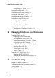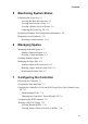 Contents 5 Monitoring System Status Displaying the Event Log 5-1 Viewing the Most Recent Event 5-2 Viewing One Event at a Time 5-2 Viewing a Whole Screen of Events 5-4 Capturing the Event Log File 5-4 Displaying Hardware and Configuration Information 5-5 Displaying Overall Statistics 5-11 Resetting Overall Statistics 5-14 6 Managing Spares Managing Dedicated Spares 6-1 Adding a Dedicated Spare 6-2 Deleting a Dedicated Spare 6-3 Enabling Dynamic Spares 6-3 Managing the Spare Pool 6-5 Adding a Spare to th