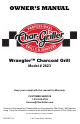 OWNER’S MANUAL Wrangler™ Charcoal Grill Model # 2823 Keep your receipt with this manual for Warranty. CUSTOMER SERVICE 1-912-638-4724 Service@CharGriller.com Contents of this manual are Trademarked and Copyrighted by Char-Griller | A&J Manufacturing. Using the information contained in this manual without consent of Char-Griller and/ or A&J Manufacturing is strictly prohibited. OM2823 A.1 ™ & © Char-Griller / A&J Mfg.