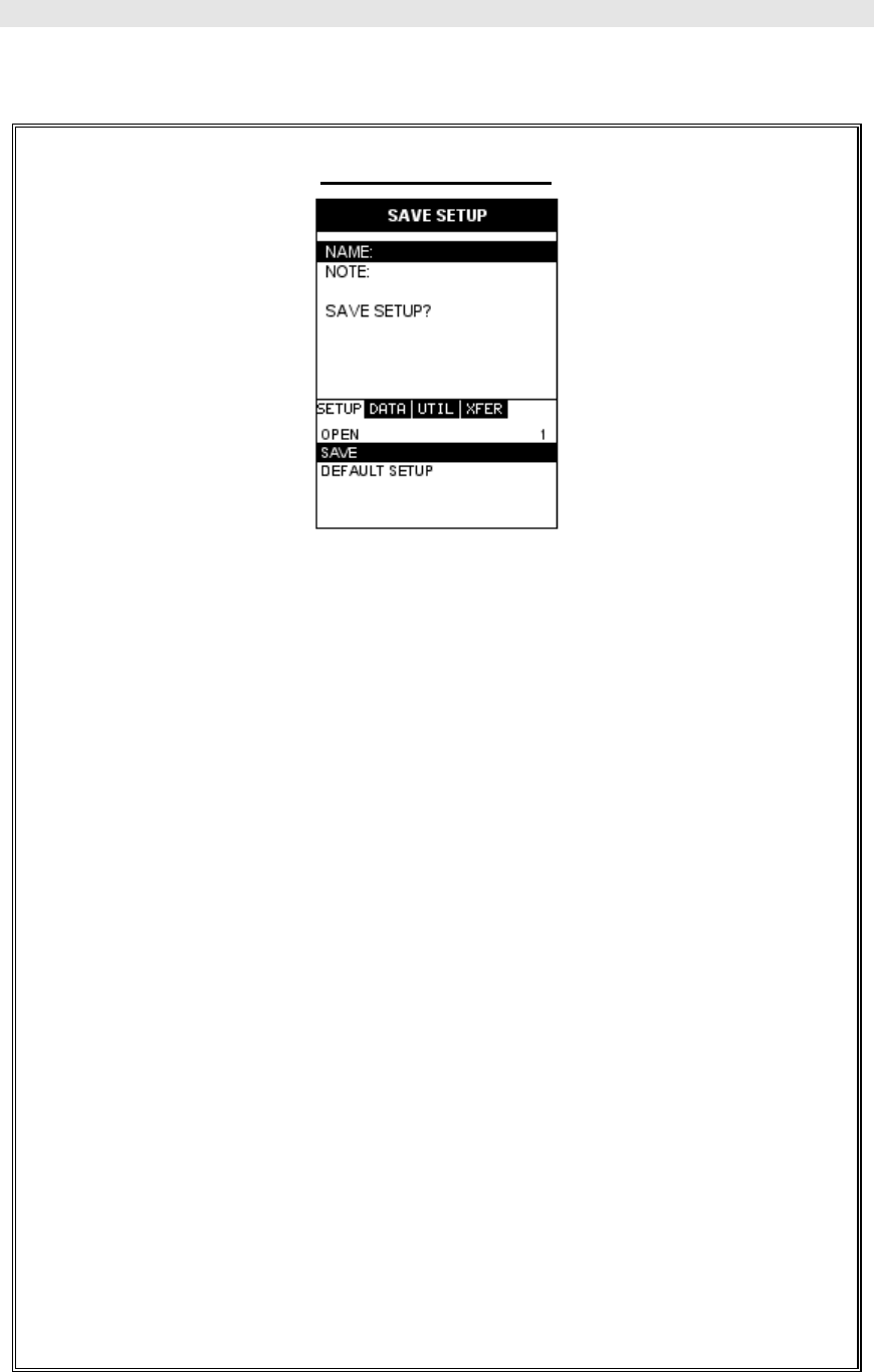 7) Press the OK key to return to the Save Setup Parameters List Box.