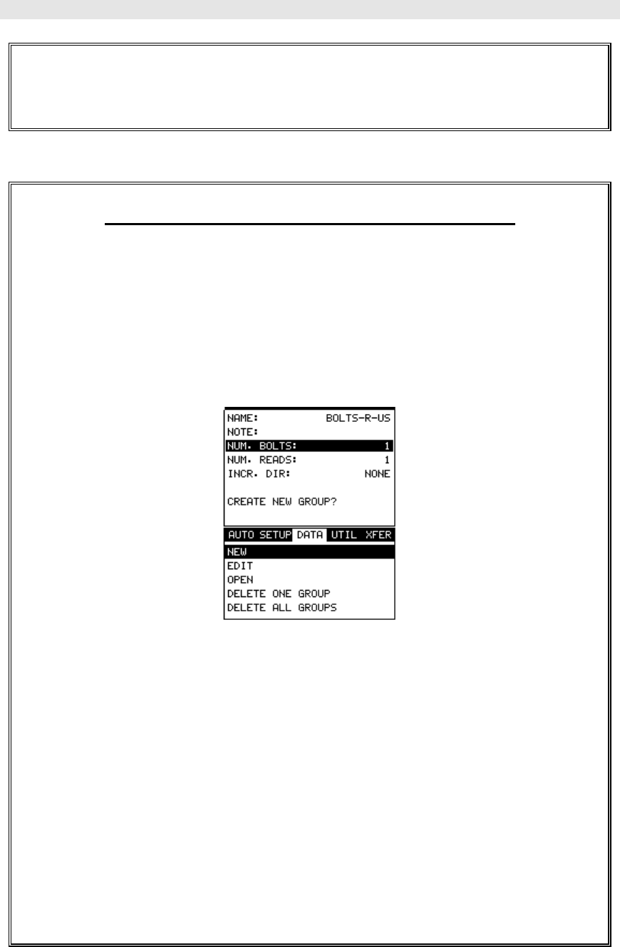 6) Press the OK key to save the NUM BOLTS and return to the Group