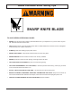 Operating Instructions SHARP KNIFE BLADE TO AVOID SERIOUS PERSONAL INJURY: • NEVER touch this slicer without training and authorization from your supervisor or if you are under 18 years old. Read this instruction manual first. • NEVER operate the slicer without the knife cover securely installed. Keep hands and arms away from all moving parts. • ONLY USE THE ENDWEIGHT HANDLE to push the food chute during slicing.
