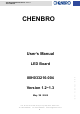 LED Board 80H033216-004 ver. 1.2~1.3 User’s Manual Copyright Copyright © 2006 CHENBRO Micom Co., Ltd.. All rights reserved. Unless otherwise indicated, all materials in this manual are copyrighted by CHENBRO Micom Co., Ltd.. All rights reserved. No part of this manual, either text or image may be used for any purpose other than internal use within purchasing company.