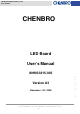 LED Board 80H033215-005 ver. A3 User’s Manual CHENBRO LED Board User’s Manual 80H033215-005 November / 04 / 2008 15Fl., No.150, Jian Yi Road, Chung Ho City, Taipei Hsien, Taiwan R.O.C., Tel: +886 2 82265500 Fax: +886 2 82265392 Email: info@chenbro.com.tw 1 w w w . c h e n b r o .