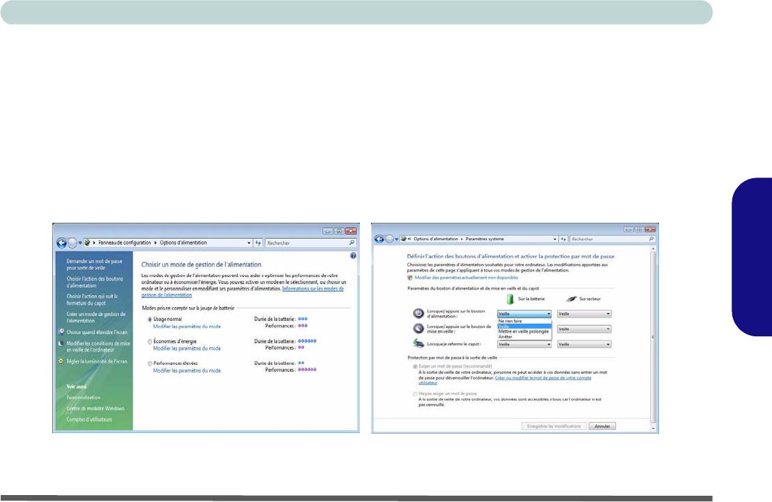 Le panneau de configuration Options d'alimentation de votre système Windows (voir la page 103) vous permet de con-