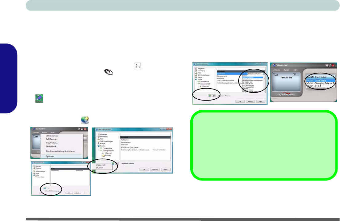Wireless > 3G Watcher) oder durch Anklicken des Symbols
