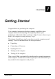 Chapter 1 CHAPTER Getting Started Congratulations on purchasing this computer. Your computer incorporates desktop computer capabilities into a compact notebook-sized package. It can greatly enhance your productivity either in the office or at home. And, of course, wherever you need it, the computer is ready and easy “to go.” This chapter first tells you step by step how to get the computer up and running.