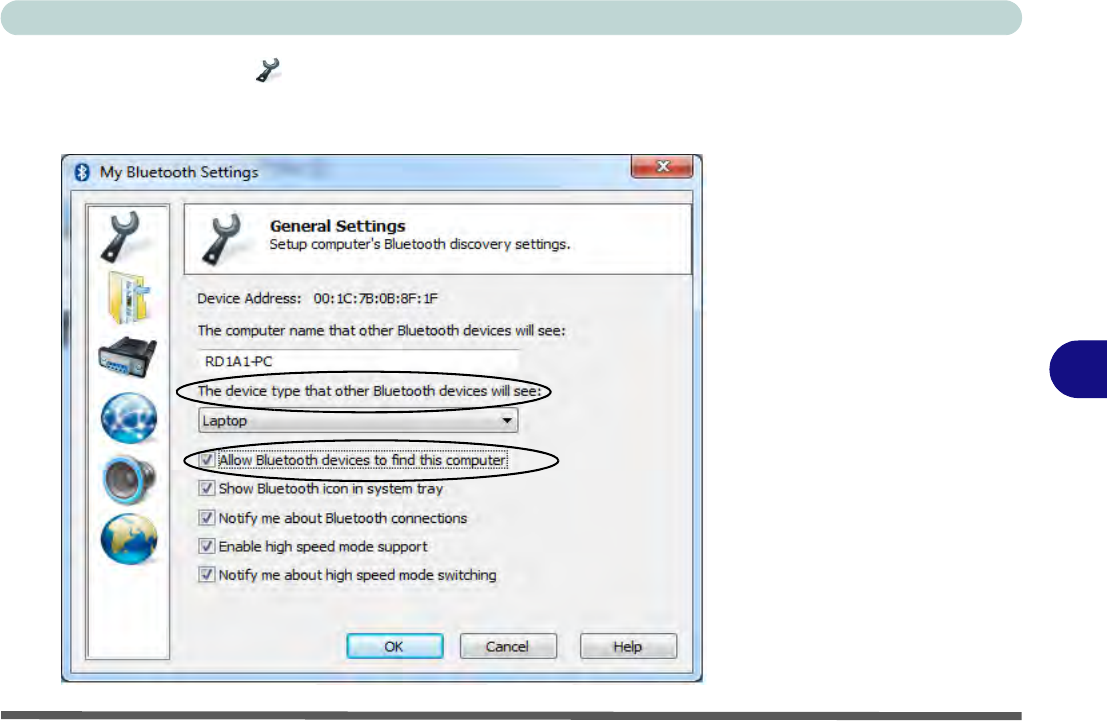 4. Click General Settings to change the computer name that other Bluetooth