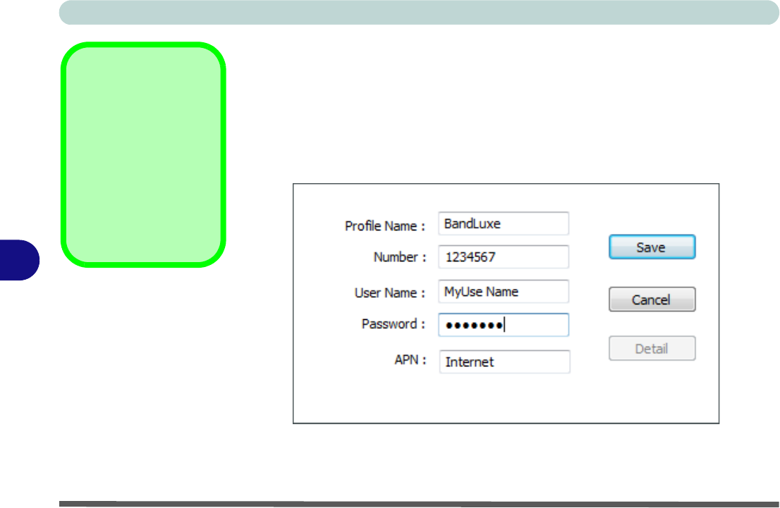 7. You will need to enter the Access Point Name and phone Number as supplied by
