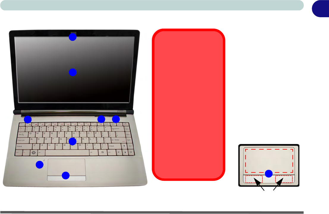 Note that the Touchpad and Buttons valid operational area is that indicated within the red dotted lines