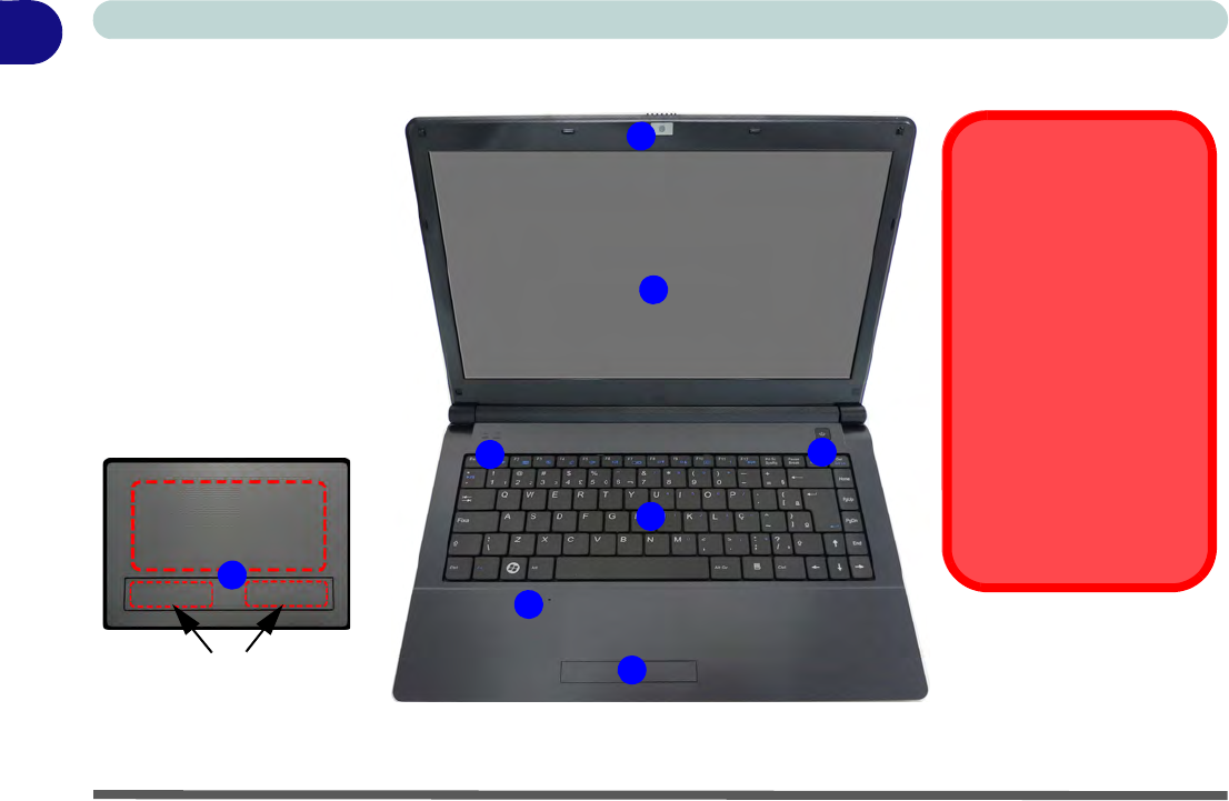 Note that the Touchpad and Buttons valid operational area is that indicated within the red dotted lines