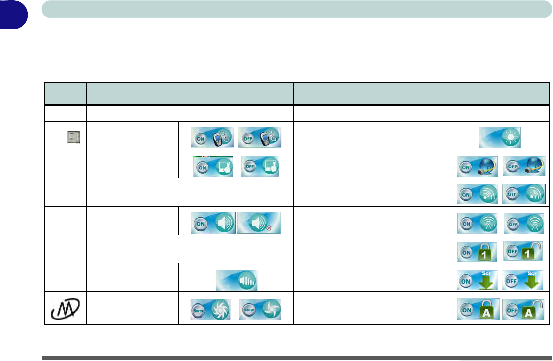 to the basic function key combinations; visual indicators are available when the hot key utility is installed.