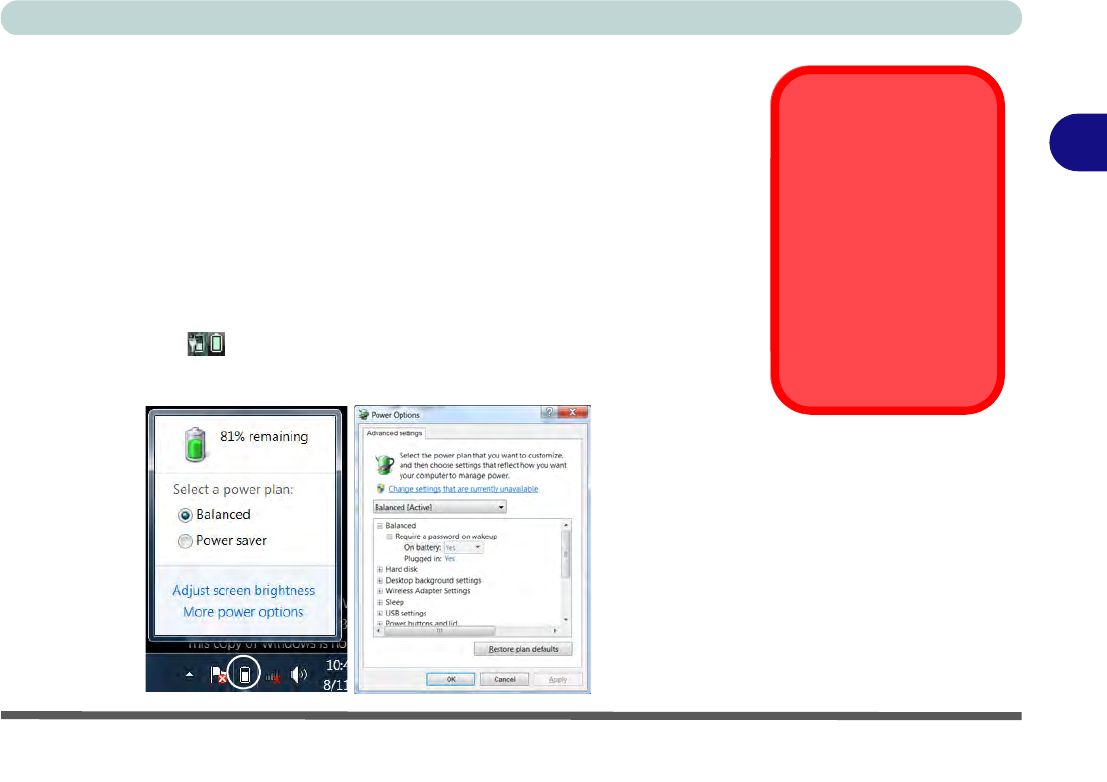 taken (e.g. Shut down, Hibernate etc.), and set critical and low battery levels from