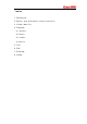 I n de x 1. Packing list 2. But t on, port and rem ot e cont rol inst ruct ion 3. Volum e label list 4. Playback 4.1 pict ure 4.2 m usic 4.3 com bo 4.4 m ovie 5. Text 6. Edit 7. Calendar 8.