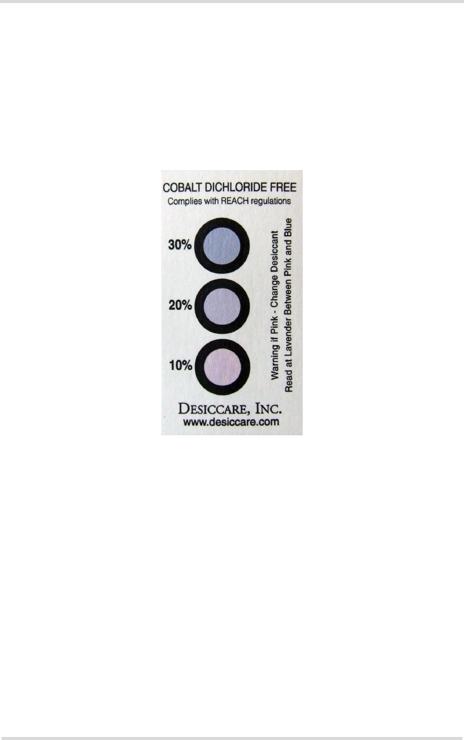 proximate relative humidity level within the bag. Sample humidity cards are shown in Figure 43.