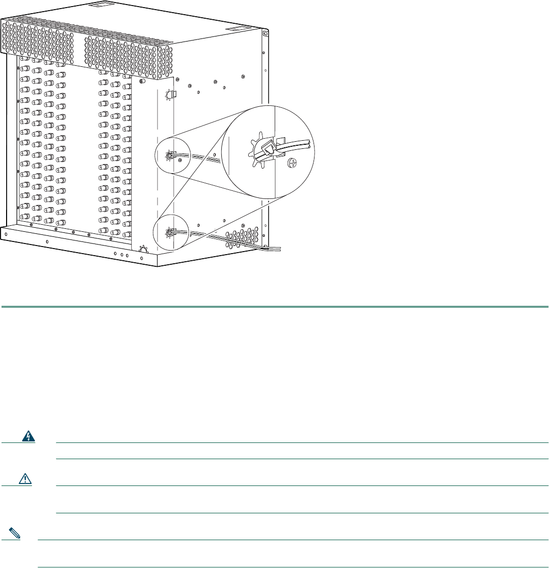 This completes the installation of the Cisco 10008 chassis in the rack. Go to the “Connecting Cables” section on page 26.