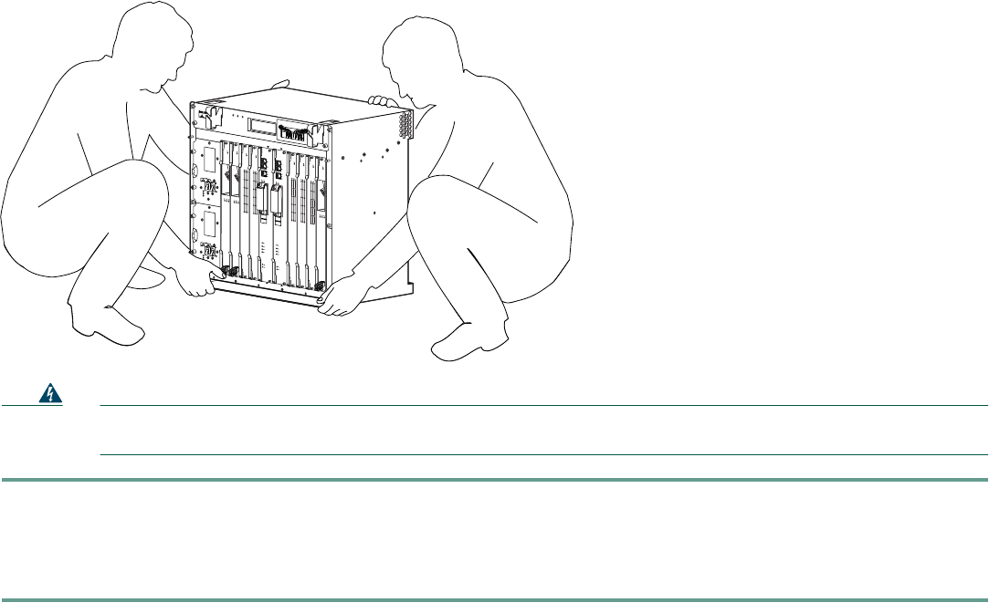 At least three people are required to mount the chassis in the equipment rack: two people are needed to hold the