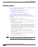 Chapter 3 Installing the Router Installing a Router Tools and Equipment Required You need the following items to install the optional center-mount rack-mounting brackets: • Number 2 Phillips screwdriver • Tape measure (optional) • Level (optional) Installing the Optional Center-Mount Brackets To install the center-mount brackets, see Figure 3-2 and follow these steps: Step 1 Caution Step 2 Measure and mark the hole at the same height on both the left and right posts.