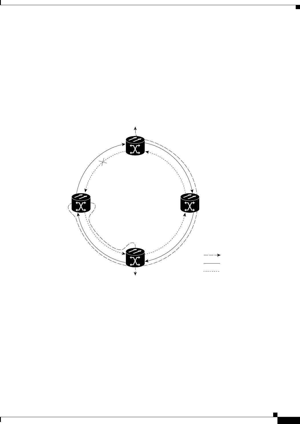 Figure 11-3 Four-Node, Two-Fiber MS-SPRing Traffic Pattern After Line Break