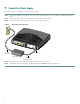 7 Connect the Power Supply Follow these steps to connect the router to the power supply: Step 1 Connect the attached power-supply cord to the power socket (labeled +5, +12, -12 VDC) on the back panel of the router. Step 2 Connect the separate power cord to the power socket on the power supply. Step 3 Connect the other end of the separate power cord to a power outlet.