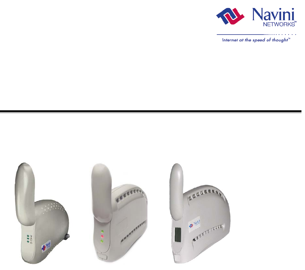 Navini Networks, Inc. Ripwave Modem User Guide Permissions, Trademarks & Distribution Copyright© 2001 - 2004, Navini Networks, Inc. All information contained herein and disclosed by this document is confidential and the proprietary property of Navini Networks, Inc. and all rights therein are expressly reserved. Acceptance of this material signifies agreement by the recipient that the information contained in this document is confidential and that it will be used solely for the purposes set forth herein.