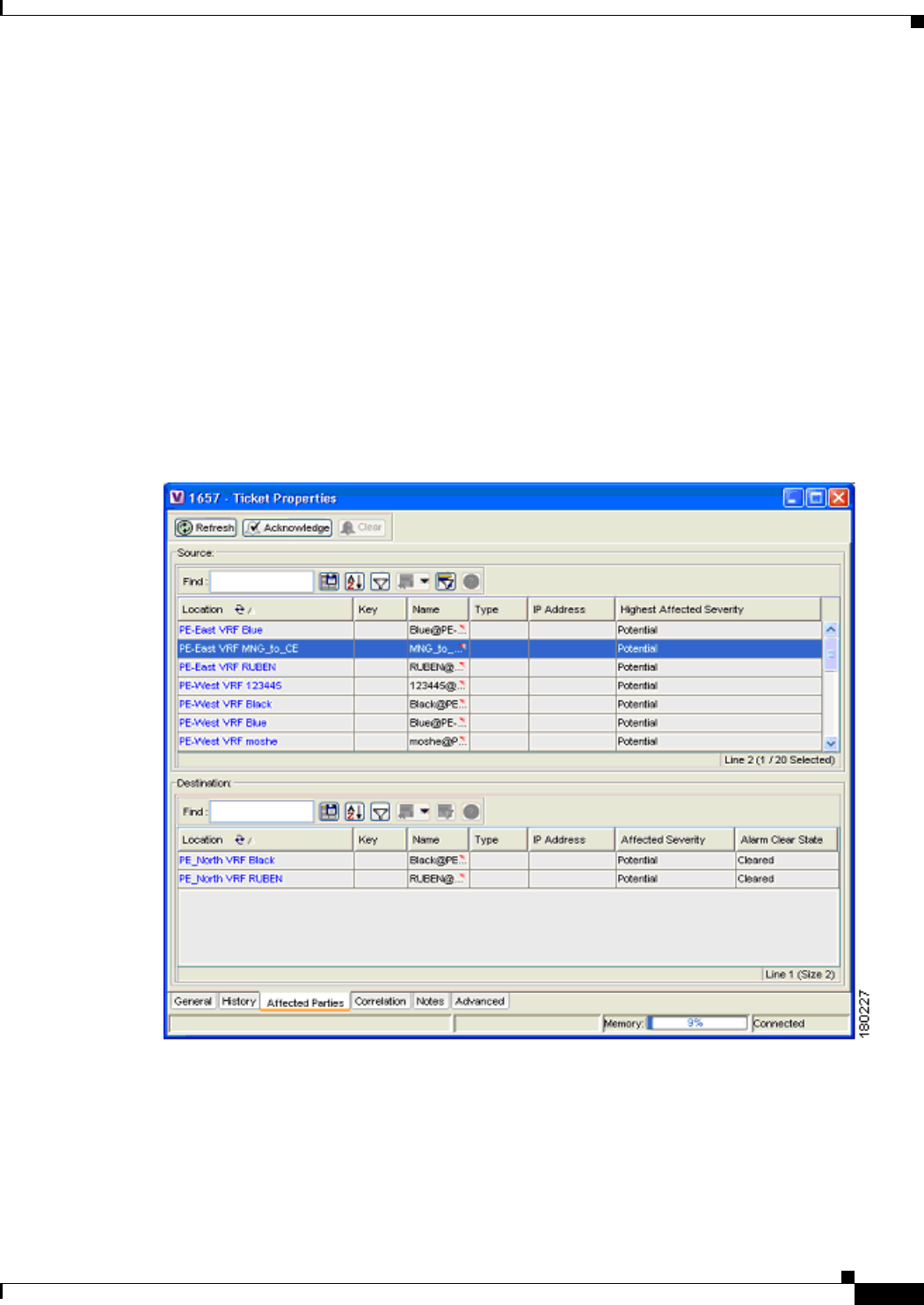 The Affected Parties tab is divided into two areas, Source and Destination. The Source area displays the