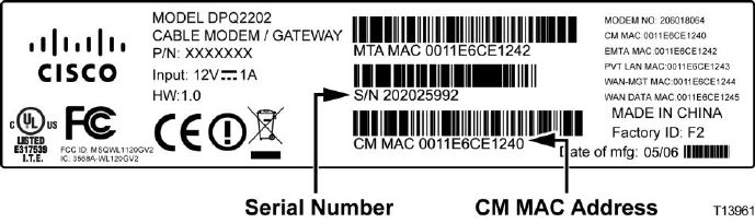 The Media Access Control (MAC) address of the modem (CM MAC)