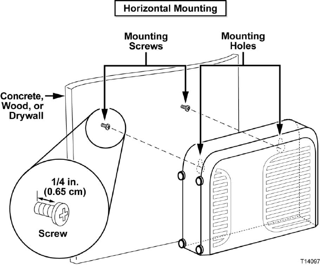 You can mount the cable modem on a wall using two wall anchors, two screws, and