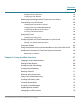 Contents Chapter 1: Getting Started 1 About This Document 1 Overview of the Cisco Small Business Pro IP Phones 3 Understanding Your Phone’s Lines and Buttons 4 Phone Components 4 Softkey Buttons 6 Using Keypad Shortcuts 8 Cisco SPA 500S Attendant Console Caring for Your Phone Chapter 2: Installing Your Phone 9 10 11 Before You Begin 12 Phone Connections 12 Connecting the Handset 13 Installing the Stand (Optional) 13 Mounting the Phone to the Wall (Optional) 14 Reversing the Hand