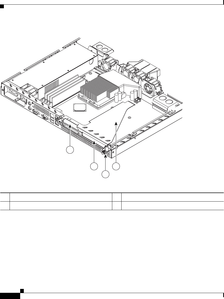 Remove the riser card (labeled 1 in Figure 4-4) from the system board to access