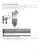 Install the lock set on the phone 1. Put the security cable around a post or through a hole in the desktop. Insert the loops at the ends of the security cable through the C-ring. 2. Insert the C-ring with cable loops through the slot on back of phone. 3. Use the combination lock to secure the ends of the C-ring around cable loops and phone. The phone is secured to the desktop area. 4. To secure the desktop charger, use a laptop cable lock.