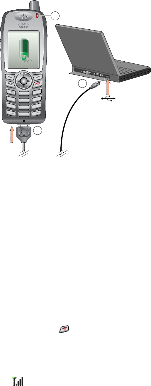 3. Monitor the indicator light after the phone briefly displays “USB Connected” on the status line.