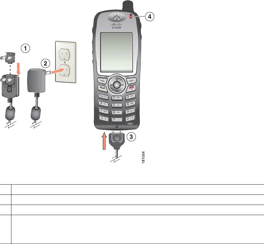 Phone connector on AC power supply cable—Insert into the connector slot at bottom of phone.