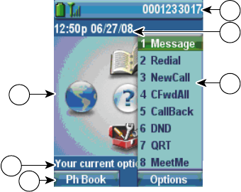 This is what your main phone screen looks like with the Options list open.