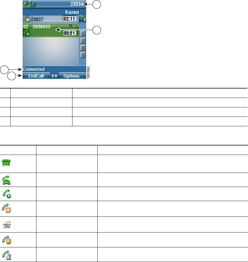 Call Activity area Calling party information, connection duration, and call state icon