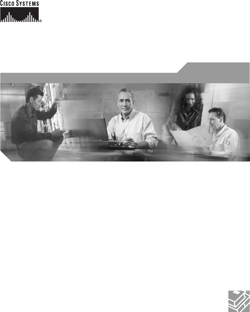 Corporate Headquarters Cisco Systems, Inc. 170 West Tasman Drive San Jose, CA 95134-1706 USA www.cisco.com Tel: 408 526-4000 800 553-NETS (6387) Fax: 408 526-4100 European Headquarters Cisco Systems International BV Haarlerbergpark Haarlerbergweg 13-19 1101 CH Amsterdam The Netherlands www-europe.cisco.com Tel: 31 0 20 357 1000 Fax: 31 0 20 357 1100 Americas Headquarters Cisco Systems, Inc. 170 West Tasman Drive San Jose, CA 95134-1706 USA www.cisco.